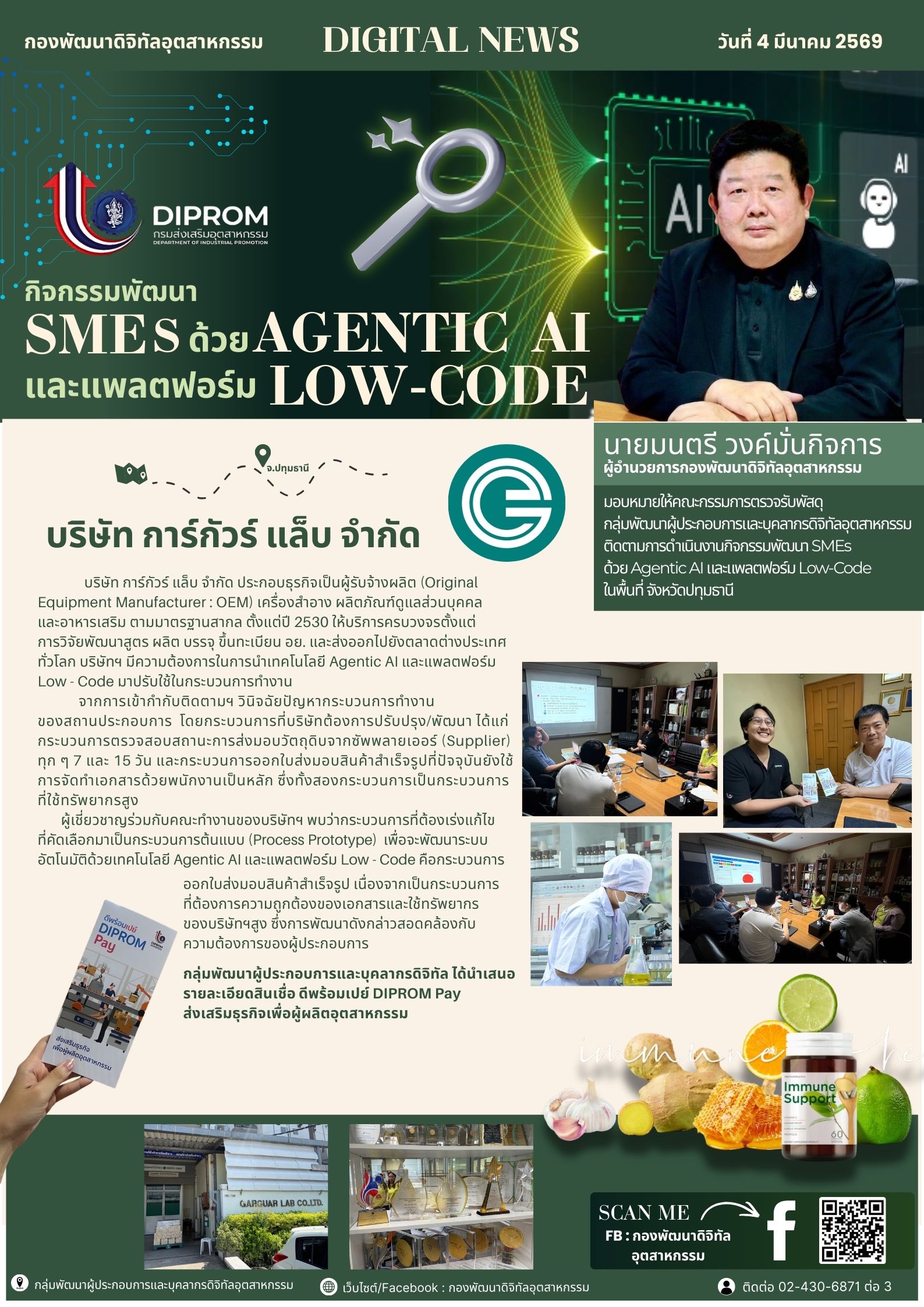 📍นายมนตรี วงค์มั่นกิจการ ผู้อำนวยการกองพัฒนาดิจิทัลอุตสาหกรรม มอบหมายให้คณะกรรมการตรวจรับพัสดุ กลุ่มพัฒนาผู้ประกอบการและบุคลากรดิจิทัลอุตสาหกรรม ติดตามการดำเนินงานกิจกรรมพัฒนา SMEs ด้วย Agentic AI และแพลตฟอร์ม Low-Code ในพื้นที่ จังหวัดปทุมธานี