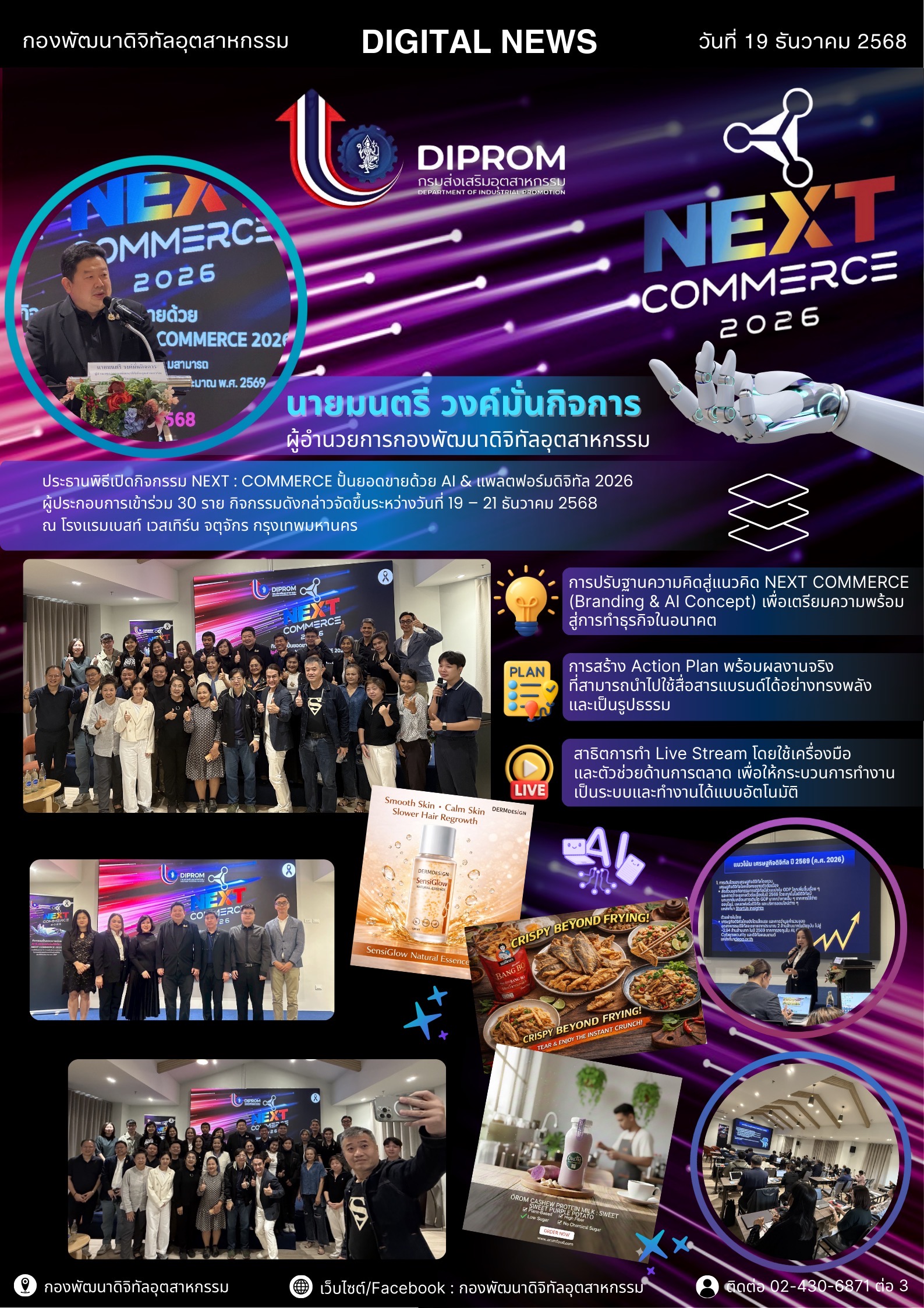 นายมนตรี วงค์มั่นกิจการ ผู้อำนวยการกองพัฒนาดิจิทัลอุตสาหกรรม เป็นประธานพิธีเปิดกิจกรรม NEXT : COMMERCE ปั้นยอดขายด้วย AI & แพลตฟอร์มดิจิทัล 2026 กองพัฒนาดิจิทัลอุตสาหกรรม กรมส่งเสริมอุตสาหกรรม ประจำปีงบประมาณ พ.ศ. 2569