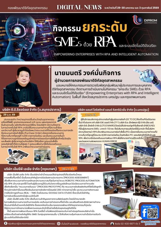 นายมนตรี วงค์มั่นกิจการ ผอ.กท.กสอ. มอบหมายให้คณะกรรมการตรวจรับพัสดุ ติดตามการดำเนินงานในกิจกรรม “ยกระดับ SMEs ด้วย RPA และระบบอัตโนมัติอัจฉริยะ” (Empowering Enterprises with RPA and Intelligent Automation)