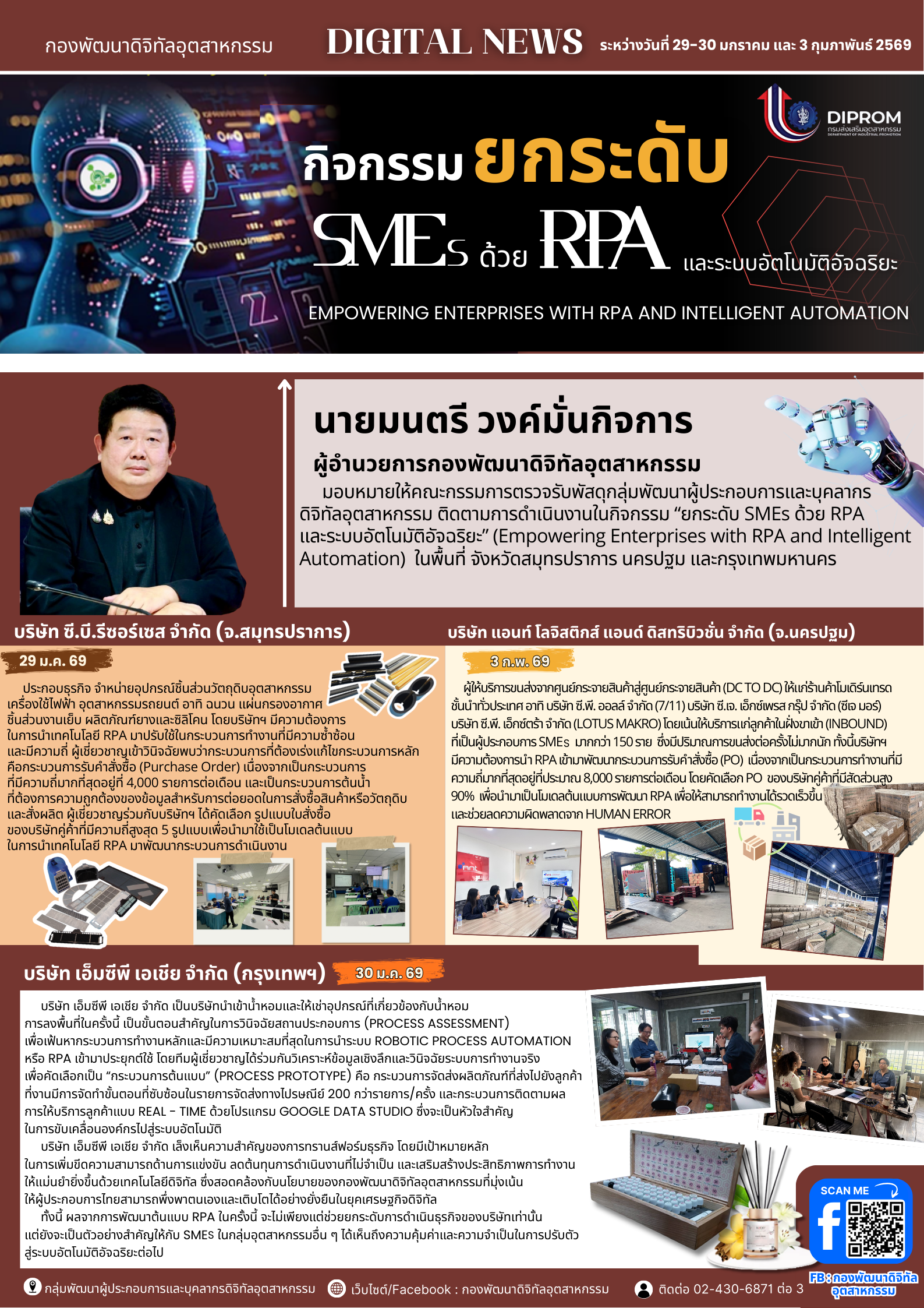 มอบหมายให้คณะกรรมการตรวจรับพัสดุกลุ่มพัฒนาผู้ประกอบการและบุคลากรดิจิทัลอุตสาหกรรม ติดตามการดำเนินงานในกิจกรรม “ยกระดับ SMEs ด้วย RPA
