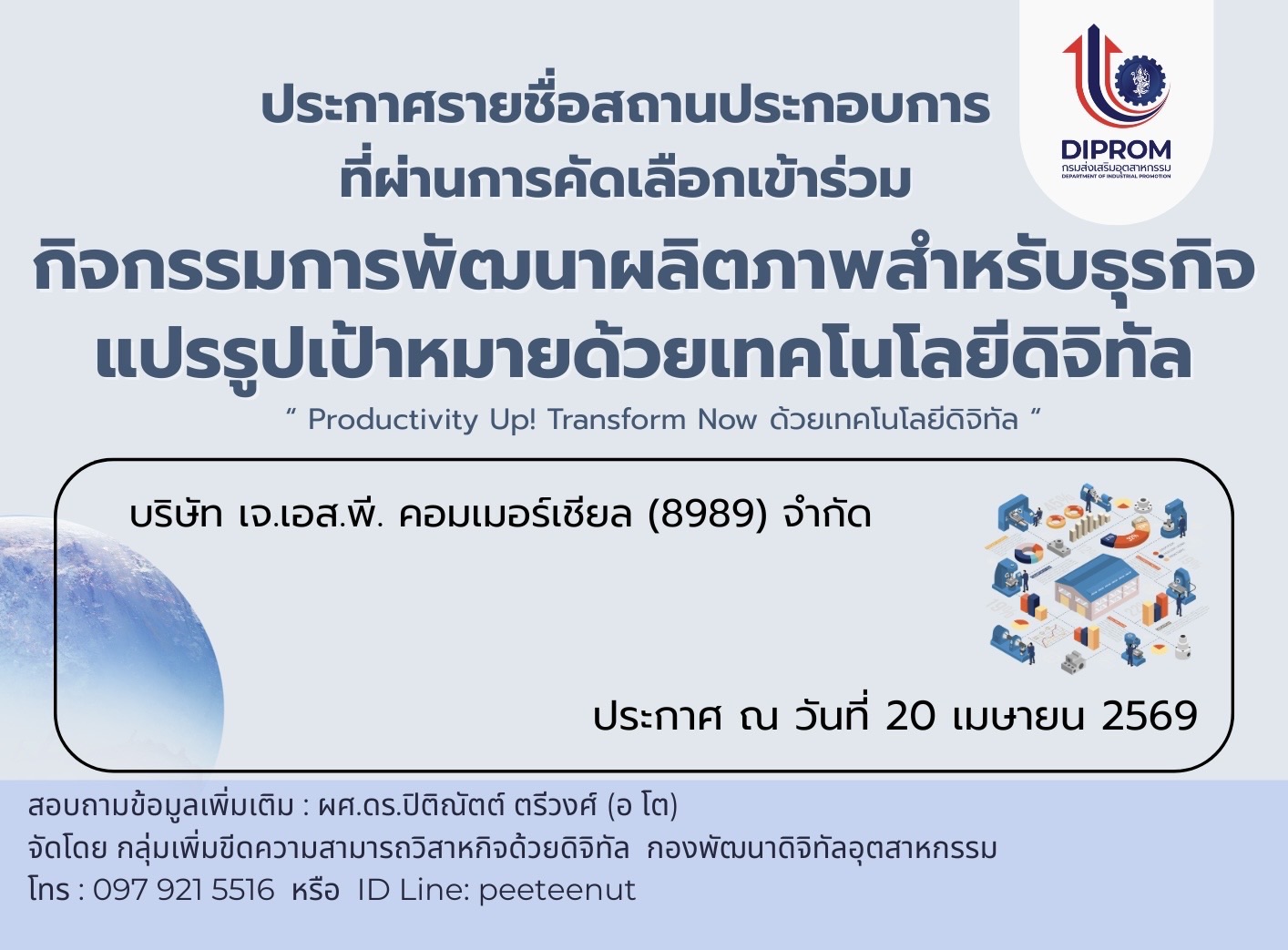 📌"กิจกรรมการพัฒนาผลิตภาพสำหรับธุรกิจแปรรูปเป้าหมายด้วยเทคโนโลยีดิจิทัล ประจำปีงบประมาณ พ.ศ. 2569" 🎉🎉