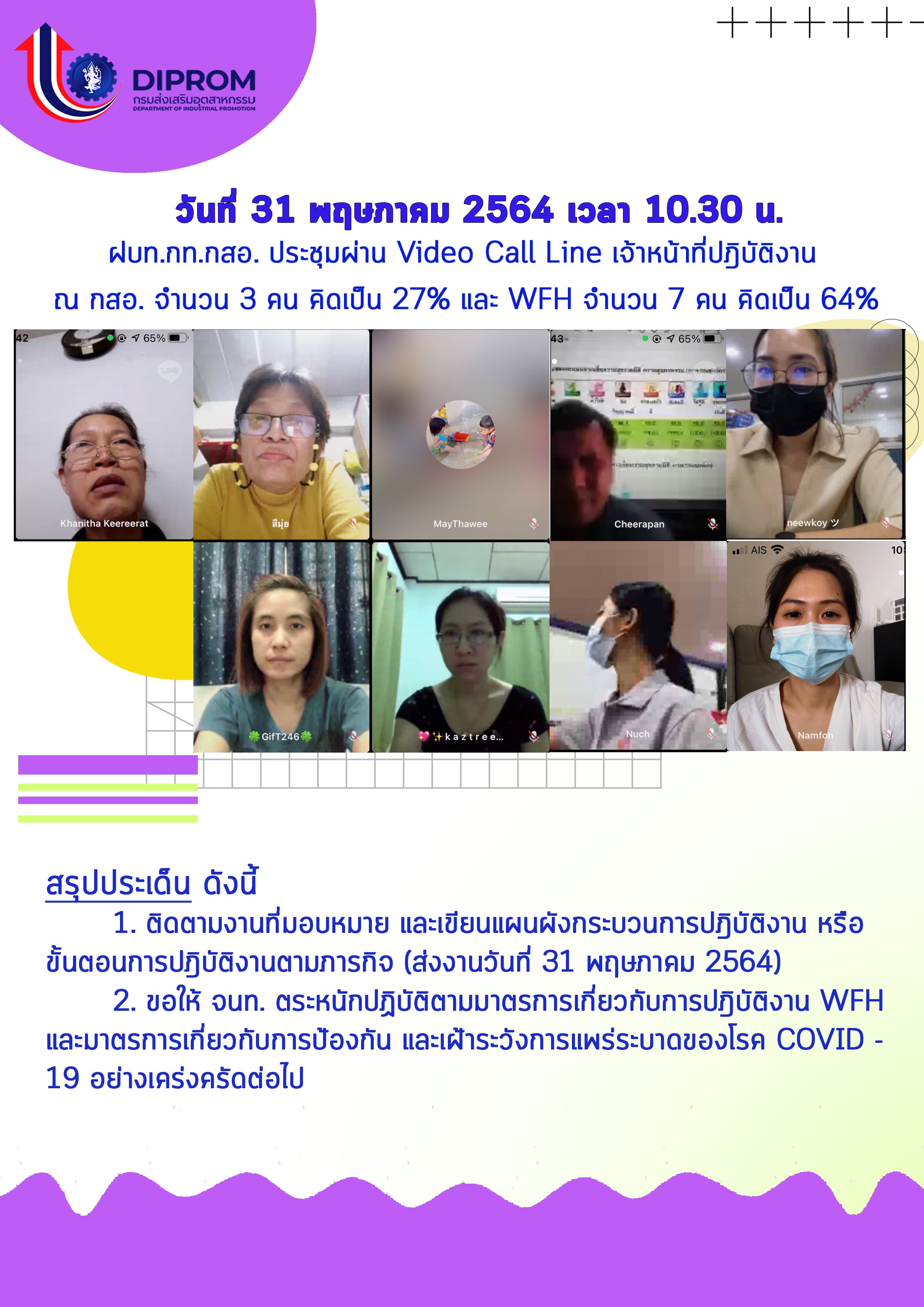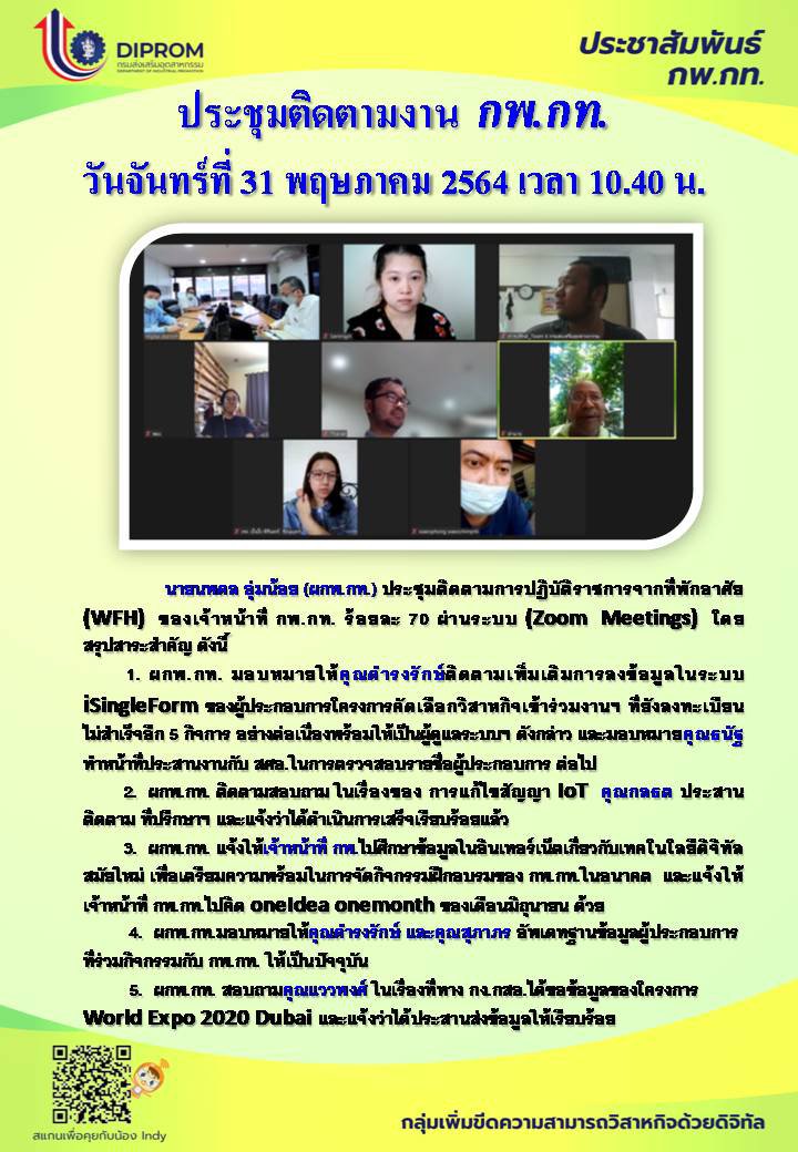 ประชุมวันที่ 31 พฤษภาคม 2564 กองพัฒนาดิจิทัลอุตสาหกรรม ประชุมเจ้าหน้าที่ กท.กสอ. ผ่านระบบ zoom